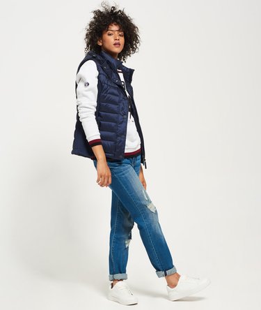Giubbotto donna con doppia cerniera Luxe Fuji Superdry. Modello con cappuccio del classico giubbotto Fuji a doppia cerniera, con chiusura aggiuntiva con bottoni automatici per proteggersi dal vento. Il giubbotto presenta un motivo trapuntato con inserti elasticizzati a coste sui fianchi e due tasche con zip. Cappuccio trapuntato con cordoncino elastico regolabile.