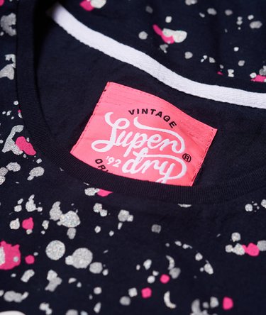 T-shirt donna Real Original Paint Superdry. Modello classico a maniche corte con stampa integrale a schizzi di vernice, logo Original Superdry sul petto e rifinito con un'etichetta con logo Superdry sull'orlo.