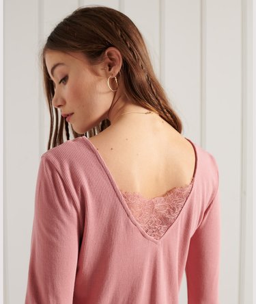 Dai un tocco in più al tuo outfit con questo top a maniche lunghe con inserto in pizzo sul retro e parte anteriore scollata.