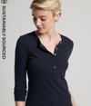Dona un tocco di sobria eleganza al tuo guardaroba con questa maglia serafino. Prendendo spunto dal classico design con mezza chiusura a bottoni, abbiamo introdotto linee pulite e tessuti fantasiosi e sostenibili per offrirti un capo che aggiungerà un'altra dimensione al tuo guardaroba.