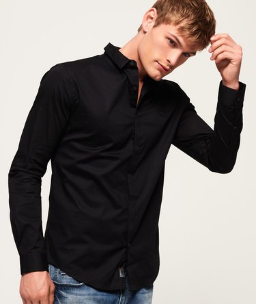 Camicia uomo sartoriale slim a maniche lunghe Superdry. Camicia classica dalla vestibilità slim con chiusura button down, polsini con bottone e versione ricamata dell'iconico logo Superdry sul petto. La camicia è rifinita con un'etichetta con logo sulla cucitura laterale e una targhetta con logo sulla pattina.