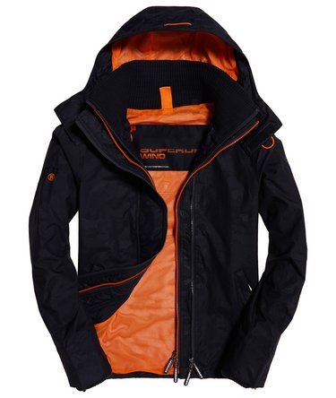 Giacca a vento tecnica uomo con cappuccio, zip a scomparsa e stampa SD-Windcheater Superdry. Giacca con cappuccio regolabile con cordoncino, due tasche con cerniera e chiusura con tripla zip. Il modello presenta inoltre fodera in mesh, polsini a coste con foro per il pollice, tasca interna con bottone automatico e orlo con cordoncino regolabile. Rifinita con un logo Superdry ricamato su una spalla e una manica.