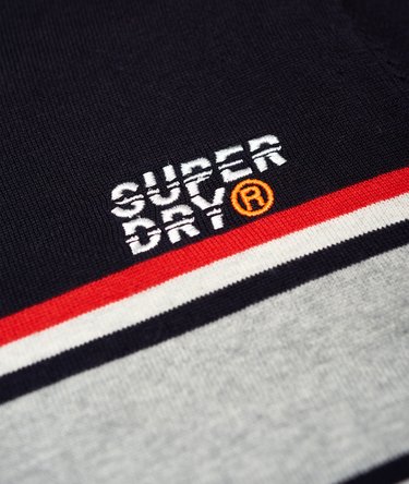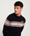Maglione uomo girocollo a righe Parallel Superdry. Questo maglione presenta un design con inserti a righe sul petto, orlo dei polsini a coste e colletto a coste a doppio strato. Rifinito con logo Superdry ricamato sul petto e una targhetta con logo Superdry sopra l'orlo.