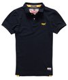 Polo in piqué da uomo Superdry Classic. Modello classico con chiusura a due bottoni, interno collo rifinito in velluto e spacchetti laterali. Logo Superdry ricamato sul petto e logo The Polo Store applicato in prossimità del bordo.